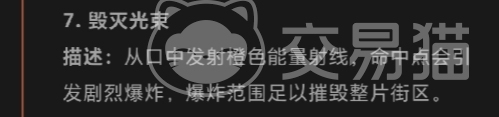 毁灭光束更是它的终极杀招之一,从它那张狰狞的大口中发射出的橙色能量射线,只要命中目标点,就会引发剧烈的爆炸,爆炸所产生的冲击波和火焰能够摧毁整片街区,所以大部分的奥特曼也是需要有足够护盾才能抵挡这个招式的。