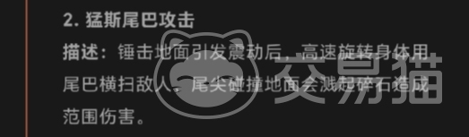 当它发动巨掌升岩技能时,双爪深深地插入地面,然后奋力一掀,便能掀起大面积的岩层,这些崩裂的岩石会悬浮在空中,既可以用来作为自己的掩体,躲避敌人的反击,又可以配合连续爪击对敌人进行全方位的立体打击,此时大家要是操作的奥特曼动作比较慢可能就会被击中僵直,猛斯尾巴攻击也是它的拿手好戏之一。战斗打响后,它会先用尾巴重重地锤击地面,使周围的地形发生改变,紧接着,它的身体开始高速旋转,如同一个疯狂的陀螺,然后用那布满尖刺的尾巴横扫敌人,尾尖与地面剧烈碰撞时,会溅起大量的碎石,这些碎石如同弹幕一般向四周飞散,形成范围性的伤害。