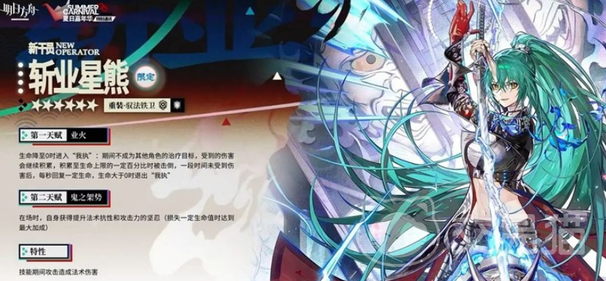 在《明日方舟》这个充满策略与挑战的世界里,斩业星熊是新来的6星限定角色,以特殊的职业定位和强悍的技能表现,吸引了大量玩家的眼球。今天小编就带来明日方舟斩业星熊介绍。她不只是外形独特——那一头绿色的长发和手持长刀的英武形象也为她增添了不少魅力。下面就来深度剖析一下这位新干员的技能与特点,看看她究竟有何过人之处。