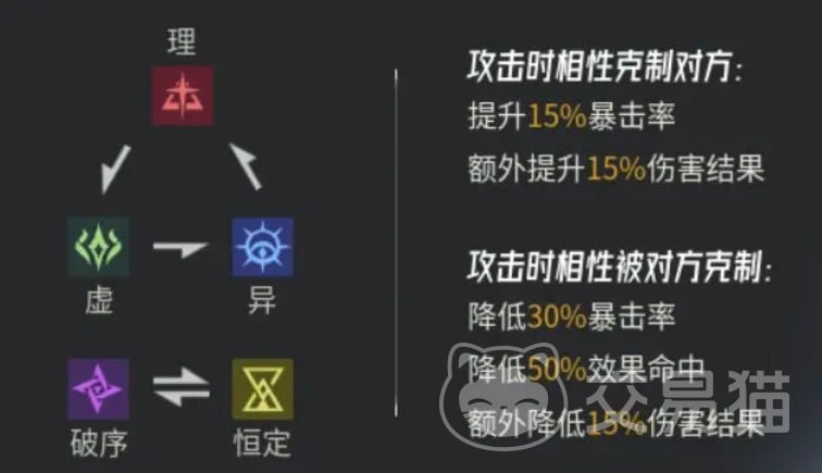 伊瑟的战斗核心在于回合制策略博弈,而胜负的关键很大程度上取决于角色的速度属性,在不同玩法模式下,最多可同时派遣4至5名异格者上场作战,而角色带来的推条类机制对于结局走向也是有很大影响的,异格者们分为五种不同的属性类型,其中红、绿、蓝三种下位属性呈循环相克的关系,而光、暗两种上位属性则拥有恒定的克制优势,因此在组建队伍时必须充分考虑属性搭配,利用克制关系来最大化输出伤害。