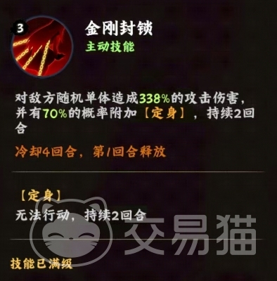 不过这个技能虽然是攻击技能但是不能选择目标,而是对随机单位造成输出效果,这一次的伤害高达338%攻击力数值,这一数字在实际战斗中,足以让敌人感受到压力,无论是面对脆皮型角色还是有一定防御能力的单位,都能造成可观的伤害效果,更为令人惊叹的是该技能在造成伤害的同时,还有70%的几率为目标附加定身效果,并且这个定身状态能够持续两个回合之久。