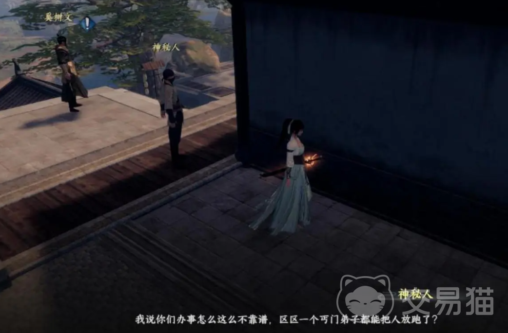 继续前进到990.273处会自动触发剧情,此时能听到两个神秘人在进行对话,他们在追捕这个丐门弟子,我们听完后也能得到线索,然后直接去丐门,在大门口就会自动触发和丐门弟子的对话。