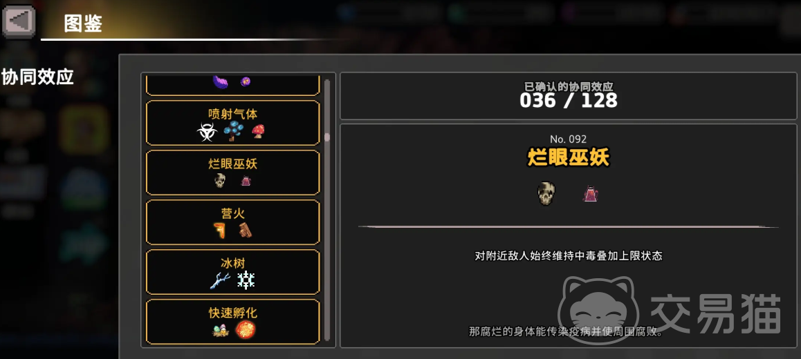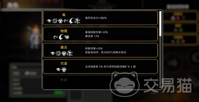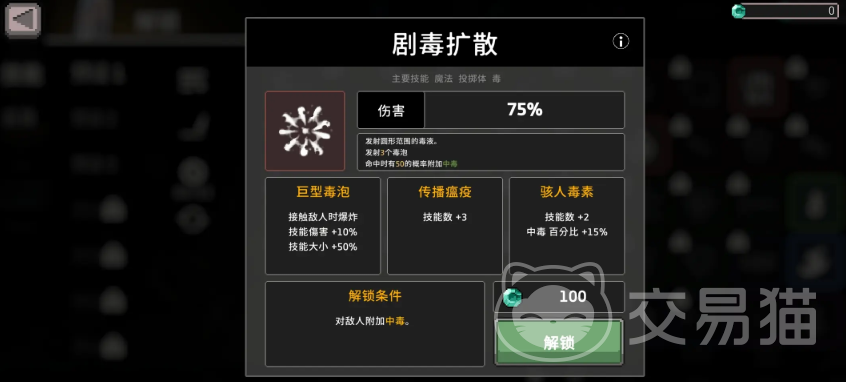 下一步便是解锁“剧毒云”与“涂毒”两个核心技能,其中“剧毒云”的解锁较为复杂,要求一次性使用四星剧毒云技能打出500点毒伤,这里推荐先解锁增伤相关的圣器如“蜥蜴串”“流量碎片”“霉菌蘑菇”,借助其提升技能威力。打法上可以选择聚怪刷毒,或打到1-3关的BOSS“贪婪”,因其血量足够高,便于积累高额伤害数字。解锁“涂毒”后,就能逐渐组出完整的毒骑技能构筑,包括:启动飞镖、剧毒扩散、剧毒云、涂毒、毒刃、毒气爆炸、神经毒素和过载,6毒4魔2咒搭配,基本涵盖了毒骑核心所需。