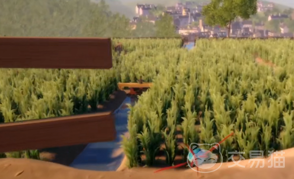 在从上方下去之后就是稻田,这个地方本身的水域还是很多的,但是有不少都隐藏在稻田里面,所以玩家们在空中滑翔的时候可以多往草里面看看,因为我们需要过关的话那么从草丛之中移动是最方便的路线。