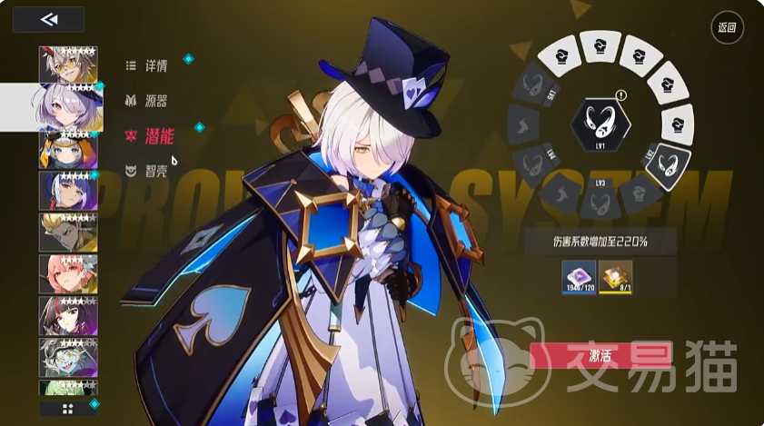 对于单体敌方目标,以及群体单位都能造成极高的伤害,且具备一定的控制效果,将输出发挥到极致。普攻让单体敌人受到260%高额伤害,40%几率给敌人附加2回合“速度下降”;甜心:再每次造成击杀时,减少1回合自身所有异格者技能冷却。对敌方全体单位打出280%伤害,敌人每损失1%生命,伤害结果提高0.6%,攻击后还能回复自己损失70%的血量,输出伤害越高,越容易直接秒杀敌人,非常适合对残血进行收割。大招先对单体造成3段攻击力为180%上海,一段有75%几率添加眩晕,之后对全体敌人造成溅射伤害,前三次若已经击杀目标,溅射伤害直接提升到100%。