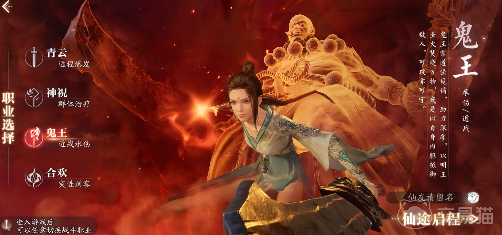 而且如果选择该职业,可以有两条不同的线路发展,一种是偏向于坦克的,鬼王具有厚重的护甲,生命值也比较高,在战斗时的生存能力是很强的,可毫不畏惧的站在前方,担任队伍吸引火力,承担伤害的责任;在一些未知性比较大的野外副本中,坦克鬼王都是非常受到大家喜欢的存在,也是组队中很重要的角色。还有一种线路则是煞鬼王,他们的战斗机制独特,能在战斗中不断的积累怒气,达到变身的效果,进而爆发出超强近战效果,但是这种线路的他们承伤能力不高,偏向于专注输出,能通过增益获得更多效果,反击效果也比较强力。