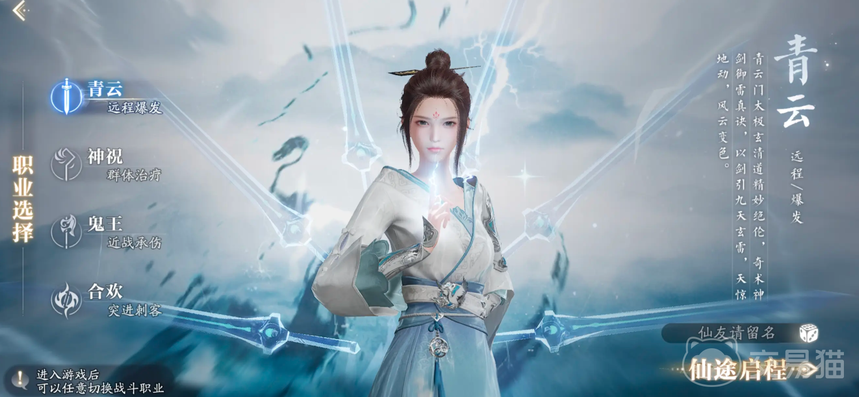 该职业的人气也一直居高不下,目前的发展路线也有两个偏向。其一是剑青云,其二则是雷青云,2种线路各有特色,剑青云的技能招式之间搭配很重要,能形成强势的连击效果,可灵活自如的使用各种技能,攻击时身形灵活,准确找到敌方破绽,让敌人承受巨大伤害;雷青云的操作更简单易懂,技能也比较具有特色,更善于打出远距离瞬间的爆发,主要针对单体的爆发力很强,能在较远的地方就对敌人发起猛烈攻势,处于安全位置压制对手。