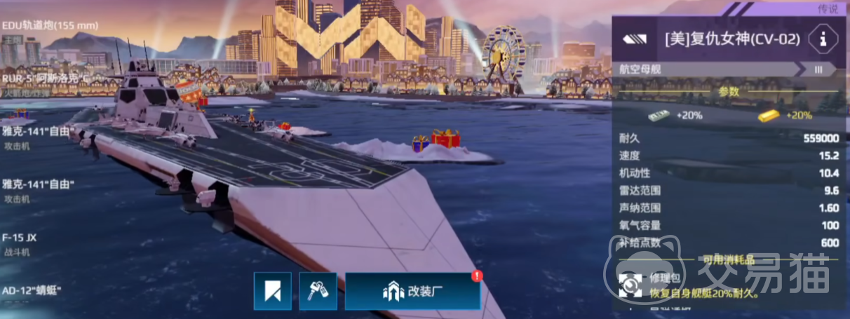 此外,她还拥有双直升机与高规格防空配置,面对潜艇、导弹与无人机多线威胁时也能从容应对。尤其是新增的潜水系统,使她脱离了“固定靶”的命运,提升了机动性与生存率。当然,复仇女神也并非没有缺点,庞大的舰体与不佳的速度使得她在复杂海域中容易被集火围剿,一旦视野暴露,常常成为敌方首选目标。不过就整体强度而言,她依旧是顶尖航母玩家的最优选。