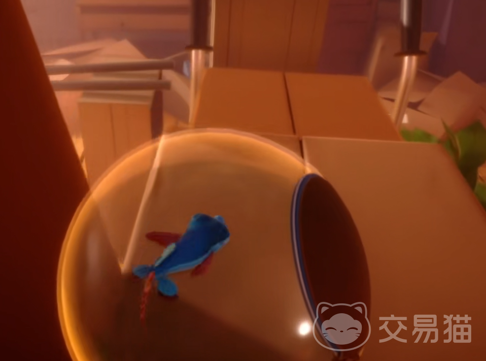 在一开始的时候会有着一小段剧情。接下来正式开启关卡。一开始我们是在高处,同时是在鱼缸里面,这里不能从高处直接掉落,不然我们的鱼缸会会直接破碎。我们先沿着左边的长条直接移动。在路上遇到一些物品记得将其给直接撞倒为我们创造出一条路。之后来到窗台我们先跳入鱼缸里面。