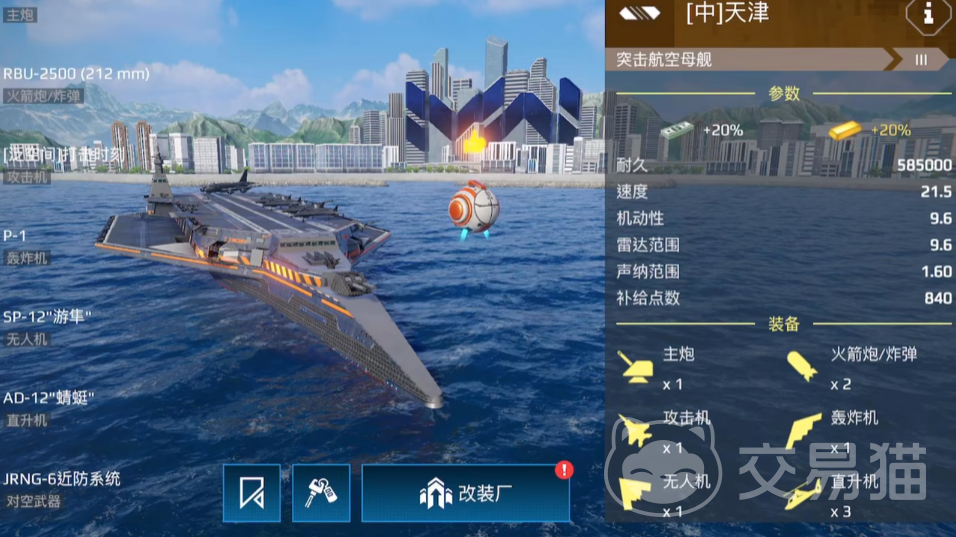 最具代表性的还是天津的武器配置,一门主炮,两门火箭,再加上三架反潜直升机,这套系统不仅火力全面、打点密集,还能有效应对潜艇威胁,对大鲸等强势潜艇具备反制能力。虽然缺乏拦截点灯手段,在视野控制上略有短板,但由于新机制降低了突航在点亮方面的权重,这个缺点已不再致命。综合来看,不论是单排作战还是配合队友,天津都能打出极高的战场存在感,毫无疑问是当前最值得投入的一线航母。