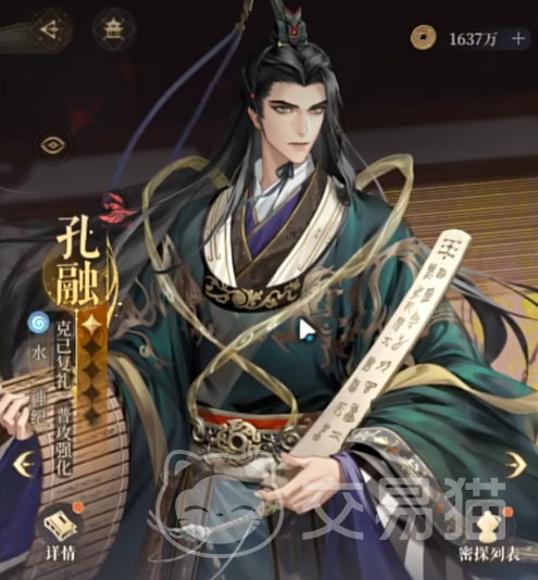 以上就是如鸢孔融介绍的内容了。对于玩家来说,如鸢孔融不仅是一位极具实用性的辅助型角色,还能为队伍带来持续的输出提升和生存保障。如果你正在考虑是否抽取这位角色,建议不要错过这个机会。他将是你战力提升的重要一环,特别在密探阵容中,孔融的强度和实用性不容小觑。