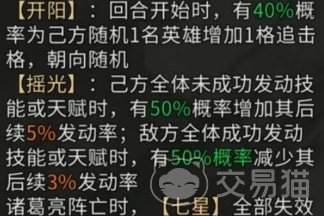 当然,诸葛亮的天赋并不只是对自己和队友有利,他的“摇光”天赋也给敌人带来了不小的麻烦。每当敌方发动技能或天赋时,诸葛亮可以通过降低敌方的发动率来限制敌人的行动,这样的干扰效果让敌人一步步陷入困境。