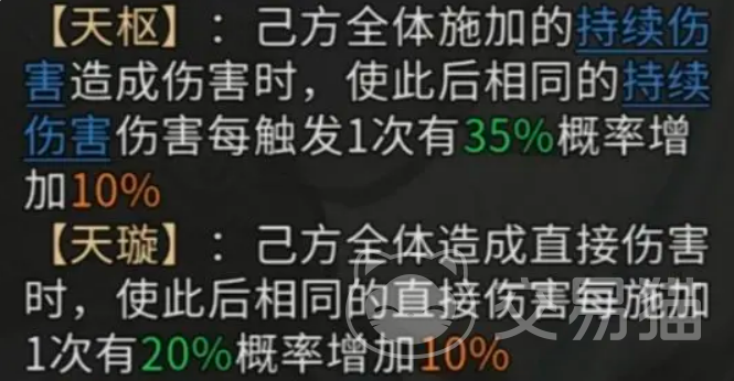 其中,“天枢”和“天璇”是最常见的两个星辰,分别针对持续伤害和直接伤害提供增益。当你的队伍在打击敌人时,诸葛亮会根据战斗中伤害的类型,不断地强化相同伤害的效果,使得持续伤害和直接伤害的输出如滚雪球般越来越强。想象一下,持续伤害每触发一次都有35%的几率增加伤害,直接伤害更是20%的几率,持续输出的能力简直令人发指。