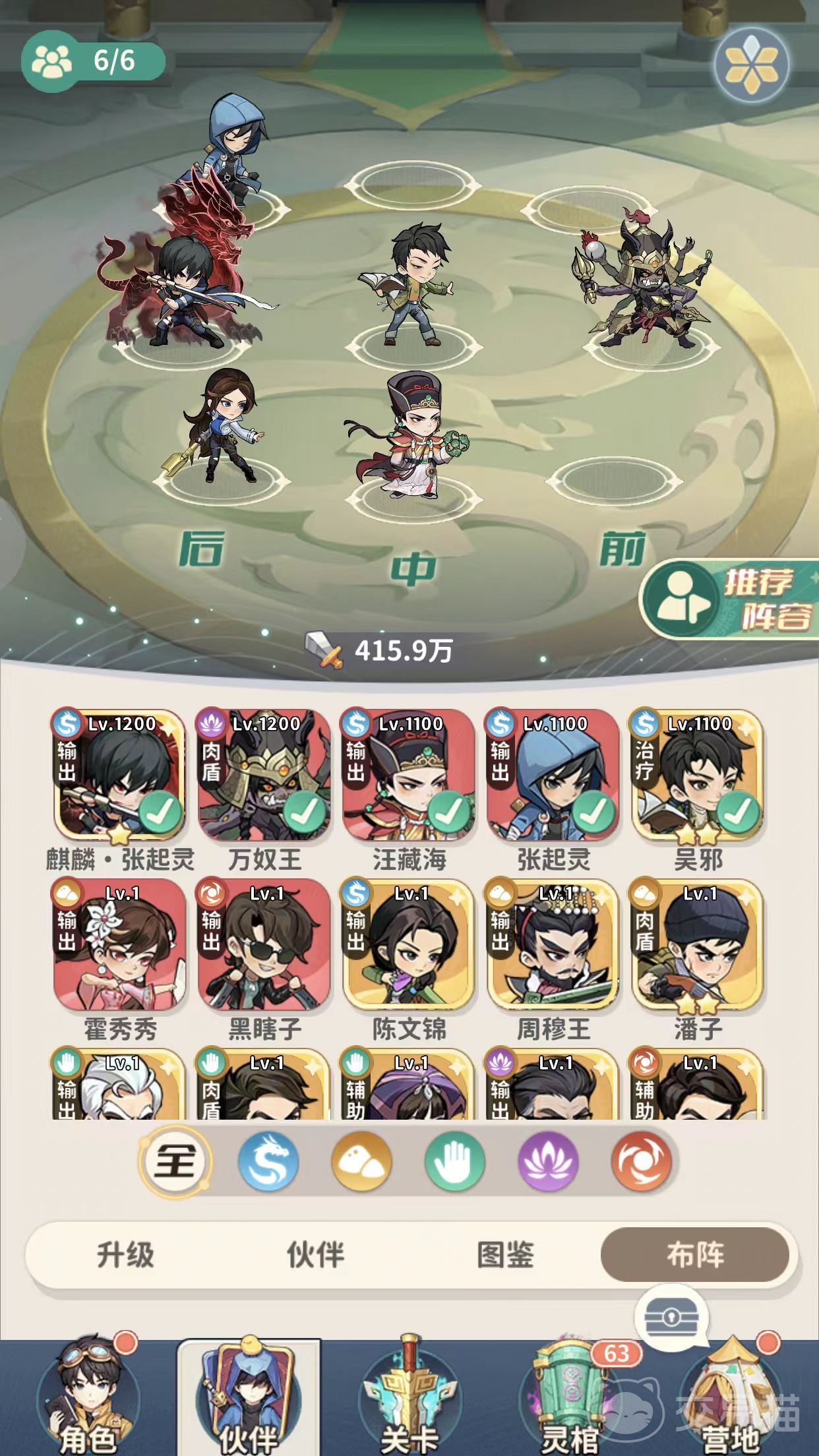 目前主角主要选择淘沙职业和寻龙职业这两类,所以小编就从这两个职业的阵容搭配方面进行介绍。首先是寻龙职业,寻龙职业自带攻击提升buff,流派的核心机制就是叠加buff增加技能伤害,面对单个目标时有额外增伤,在打boss的时候非常强势。在阵容方面,小编主要推荐主角、万奴王、麒麟张起灵、张起灵、吴邪和汪藏海的搭配方式。