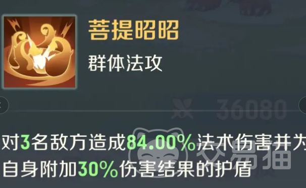 菩提昭昭这就是第2个技能,可以针对敌方三个目标直接形成法术伤害,并且在攻击之后也可以给自己额外带来一个护盾。能量消耗较低,也可以选择频繁的释放,可以打出输出伤害,而且还可以有效增强自身的生存能力,因此还是很不错的。不过玩家在实战过程中需要注意本身技能虽然强大,但是也需要合理的释放,应该根据敌方的攻击节奏,又或者是既能释放的情况。如此才可以给队友施加护盾,达到一个较好的防御效果。