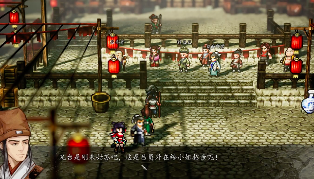 此时花掉100金币,就可以抵达目标地区姑苏城。如果喜欢跑图的玩家,可以选择放弃坐骑和几名队友一同进入大地图,然后带领团队翻越过姑苏桥,可在桥下的右手边开启一个宝箱,和月姬NPC进行交谈后,可以从他手中获得非常多的食物,能够帮助团队补充体力,之后继续向前奔跑,就可以在不远处,看到挂着红灯笼的比武招亲现场,直接点击后就可以触发与吕丰贤这个NPC的沟通,能够了解故事剧情的全部发展过程。