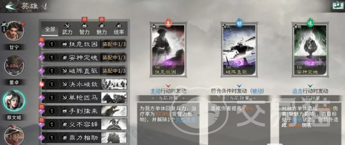 蔡文姬和马超本身就是初期赠送的角色,附带了优质副c张飞,他能够替换成庞统或者孙策,当然这三个都是传祺的品质,性价比也是相当高,在搭配的时候,这个队伍的整体效果也相对来说更加全面,整体能够带来了更高的收益。