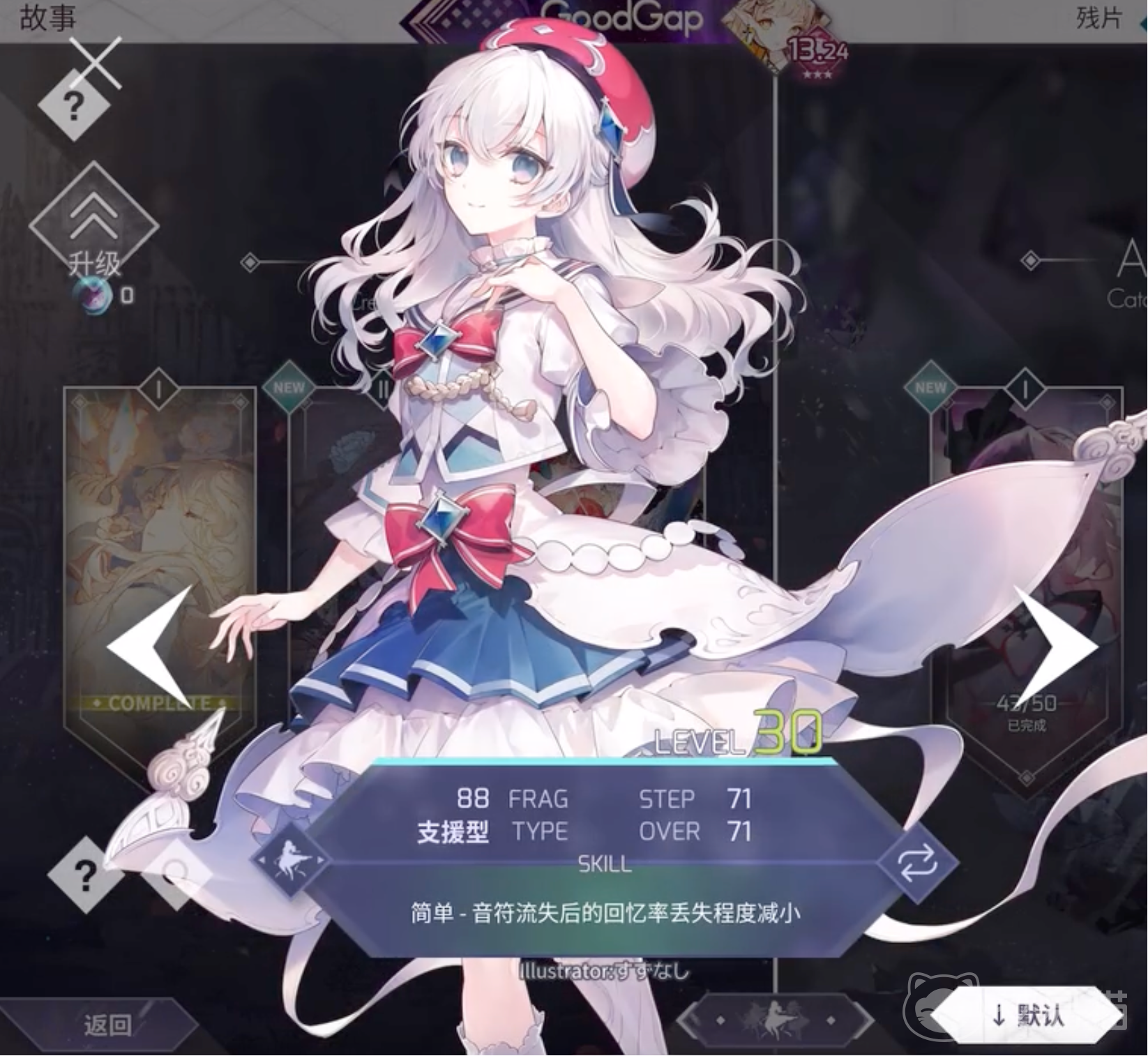 缪是许多玩家喜爱的“女儿”,其技能为“增加Track Lost容错率”,也就是在Miss较多的情况下依然能保住一定的成绩分数,适合练习高难图或挑战失误率较高的谱面。是练习进阶谱面的好帮手,对喜欢尝试高难挑战但又怕影响成绩的玩家来说非常友好。