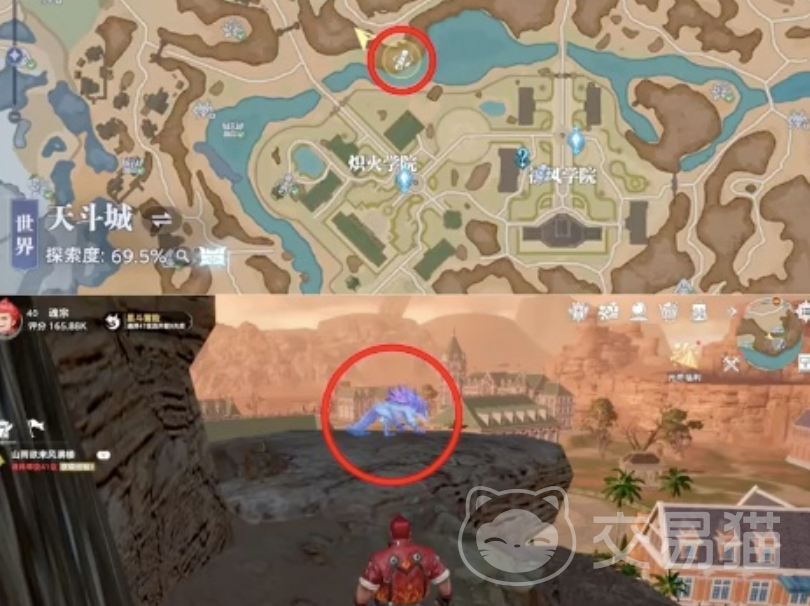 前两个点位解锁后前往联合学院。成功传送后,不要被学院热闹景象吸引,目标明确地朝学院左下方区域前进,在学院围栏附近仔细探索,就能找到风笑天的回忆卷轴。