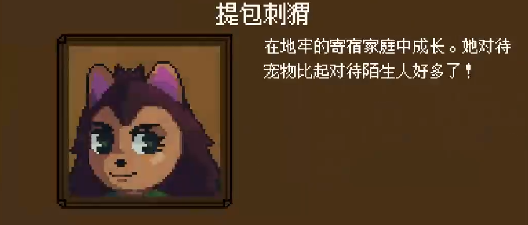 再就是提包刺猬,刺猬的解锁方式比较特殊,首先需要击败第一区域的Boss之后,在营地和刺猬触发对话接取挑战。挑战一共分为三个阶段,需要玩家按顺序依次完成才可以。挑战一为“锐爪试炼”:在1-2层达成15连击,建议使用高速武器如匕首来完成。挑战二“尖刺壁垒”在2-1层无伤通关,携带护盾和回血道具也可轻松完成。挑战三“荆棘馈礼”:在2-3层收集8个荆棘类道具。就是捡那种带刺图标的物品就行。完成所有挑战后会营地和刺猬对话就能永久解锁了。刺猬是典型的反伤坦克,核心技能"荆棘甲壳"能将所受伤害的30%返还给攻击者。搭配"腐蚀尖刺"(攻击附加中毒)与"根须缠绕"(地形控场),这套方法非常适合打持久战。