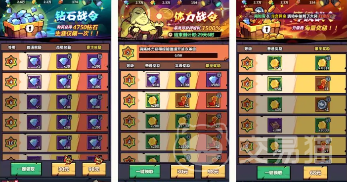 接着谈谈小氪玩家该把钱花在刀刃上的地方,首当其冲的是6元首充礼包,尽管其中包含的阎罗可能略显鸡肋,但在尚未获得盘古之前,阎罗在前期战斗中的表现着实可圈可点,体力战令堪称性价比之王,是最值得入手的,它能有效缓解玩家体力不足的困境,钻石战令同样不容错过,此外观看广告也是一种低成本获取资源的好办法,这些小额投资虽看似不起眼,却能让新手在游戏前期获取一些优势。