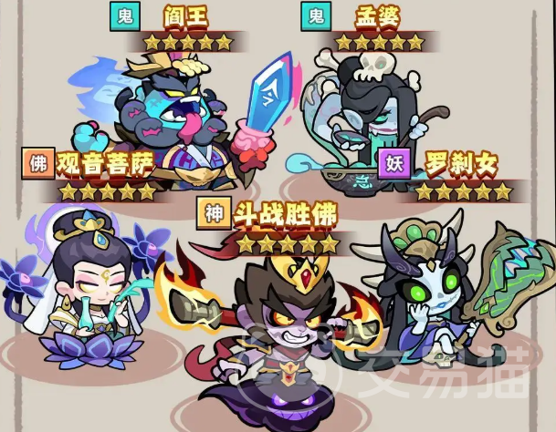 最后一个就是极限爆发流的暴击输出队,也是物理与法术双修的梦幻组合,其中的斗战胜佛手持开天神斧可以作为毕业武器使用,将物理暴击发挥的更好,阎罗王挥舞惑星禅杖,提供25%暴击加成,观音给予全队暴击增益buff,罗刹女施加负面增伤效果,进一步放大伤害,孟婆则兼顾减速回血双重效果,既限制敌人行动又保证自身状态健康,法器与遗物搭配大家也要注意,其中的格斗魔手柄、易拉罐之类的搭配是可以提升暴击伤害的,而孟婆配备绝对零度套装增强霜寒效果,控制与输出两不误,此阵容优势在于物理+法术双暴击组合拳,全面克制不同属性敌人。