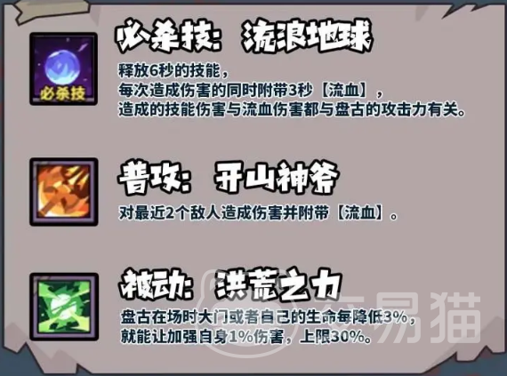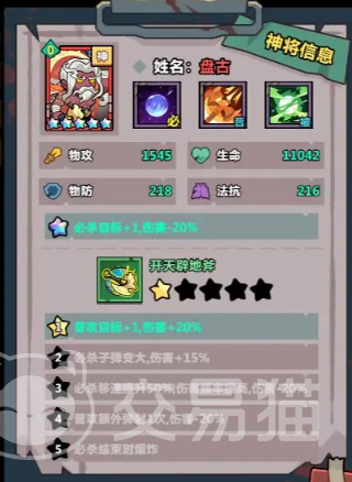 为了最大化发挥盘古的实力,这里的阵容搭配大家就要注意其他的队员,这里小编比较推荐的黄金组合包括盘古担任主C、孟婆负责守门、牛魔王镇守前排、观音提供辅助以及九灵元圣协助控制,孟婆在游戏中属于一个经典的辅助角色,技能是可以及时为大门提供回血支援,确保防线稳固如磐石,进而巧妙触发盘古的被动增伤机制,让盘古的攻击威力更上一层楼。