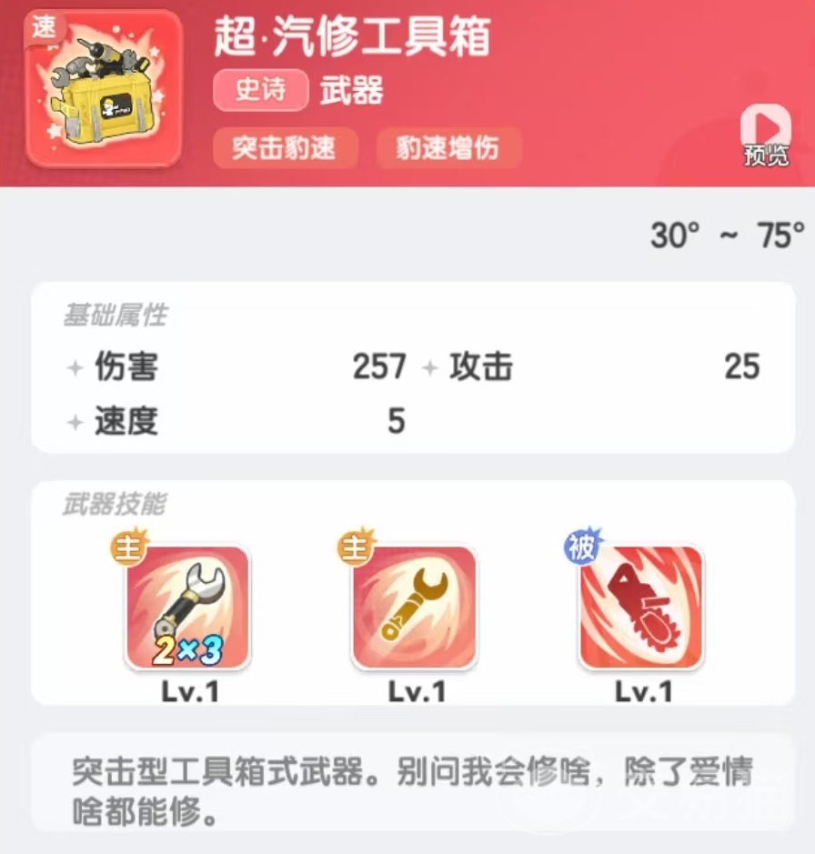 首先是在武器选择方面,小编主要推荐罚抄笔袋、汽修工具箱、许愿魔杖和大嘴跳跳糖这4个。罚抄笔袋作为起手武器,能提供稳定的伤害输出,主动技能可增加子弹伤害,被动技能能下调当前生命值百分比伤害,增加固定伤害,有双重豹速的提升效果。汽修工具箱是这一套的主力输出核心,在爆豹回合期间打出高额范围伤害,且有伤害加成,能快速清场和将敌人的血线压低。