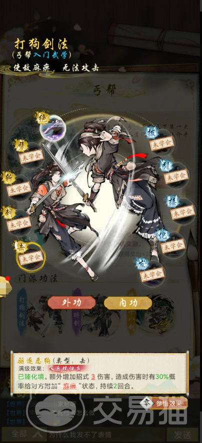 丐帮的武学非常实用,特别推荐的有三种。第一是“打狗剑法”,这套剑法能降低敌人的命中率,让对手更难打中你,提升自己在战斗中的生存能力。第二是“八仙过海”,伤害爆炸,适合关键时刻打出高额伤害,一下子把敌人压制住。第三是“降龙十八剑”,带有眩晕效果,能控制对手,非常适合PVP中先手打断对方节奏。这三套武学搭配起来,既有控制又有爆发,整体战斗力很强。