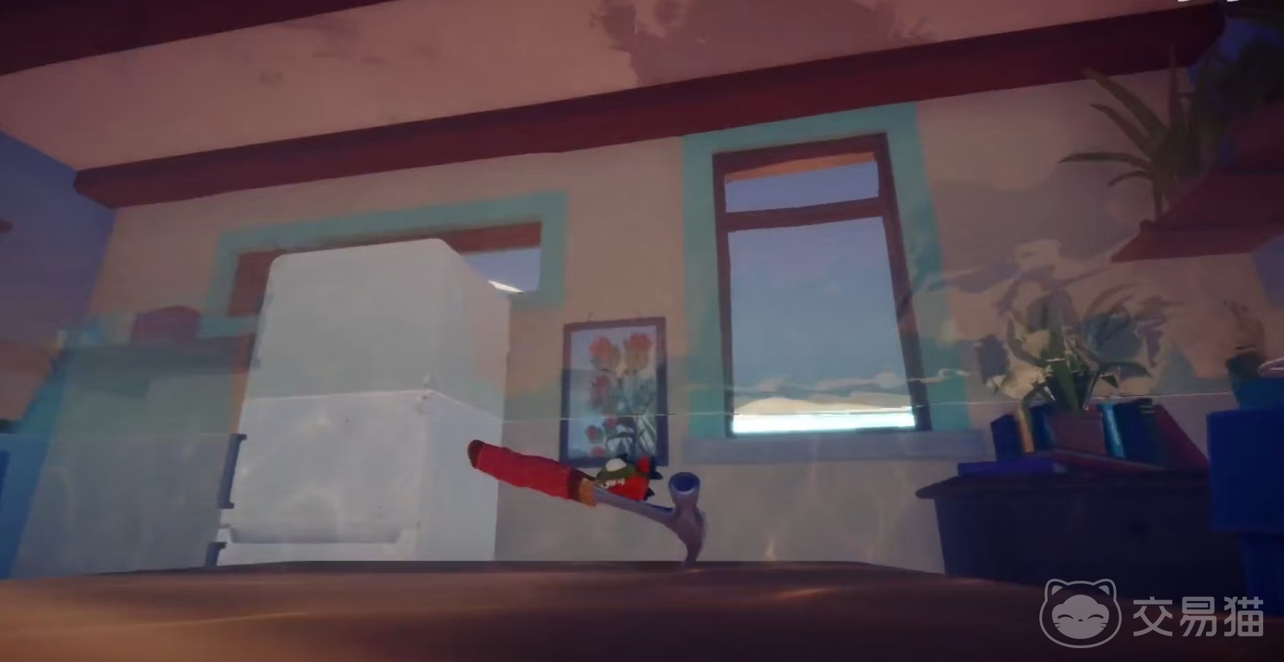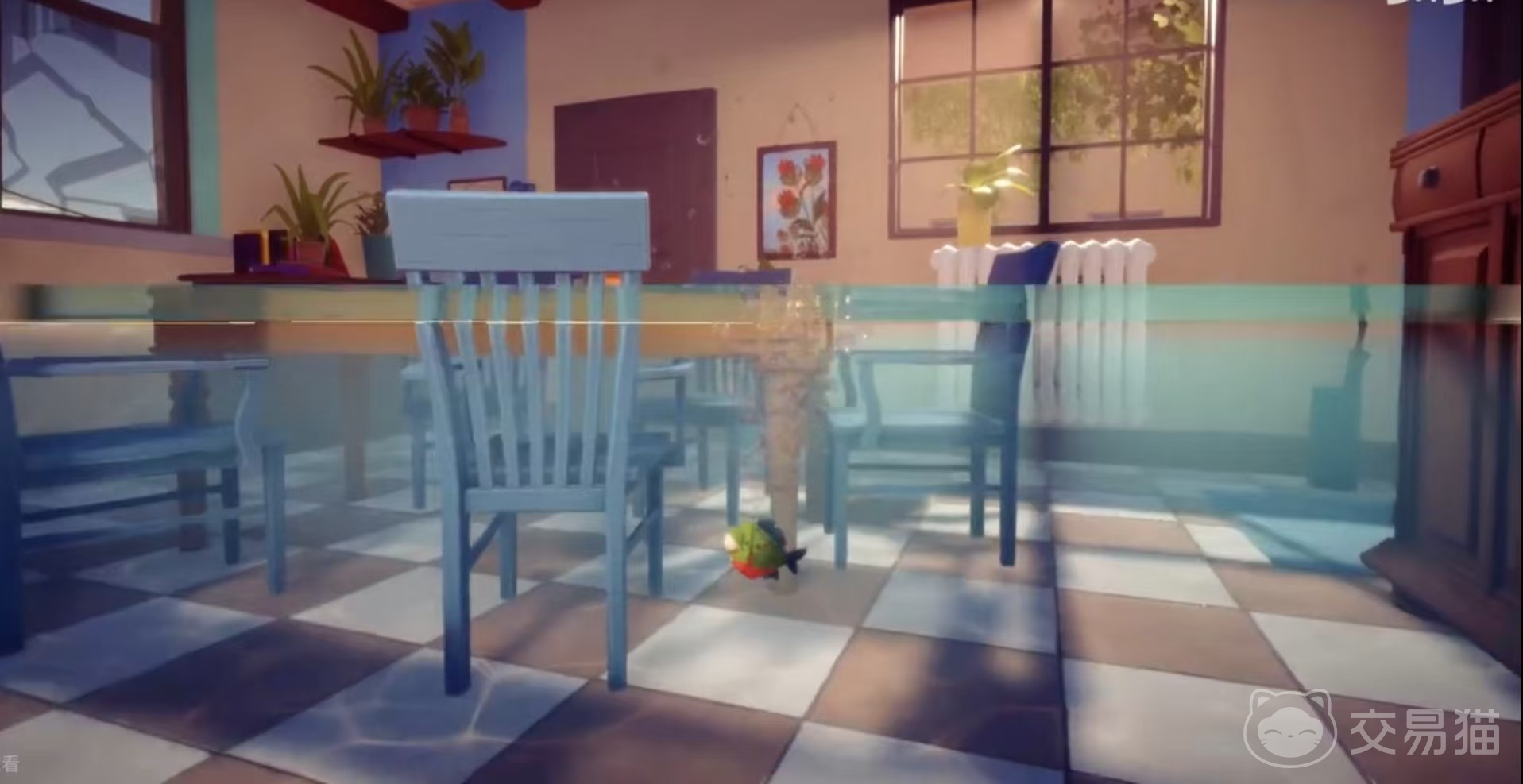 首先是关卡1,食人鱼从餐厅出发,通过咬断自家和隔壁的水管让水流入家中,使水位上升超过窗台,再撞碎玻璃进入窗外玻璃瓶,沿着路径前进,在路上躲避鸽子袭击,然后借助电线杆等道具,最终到达有鸽子的窗台,让鸽子带着它飞向大海。