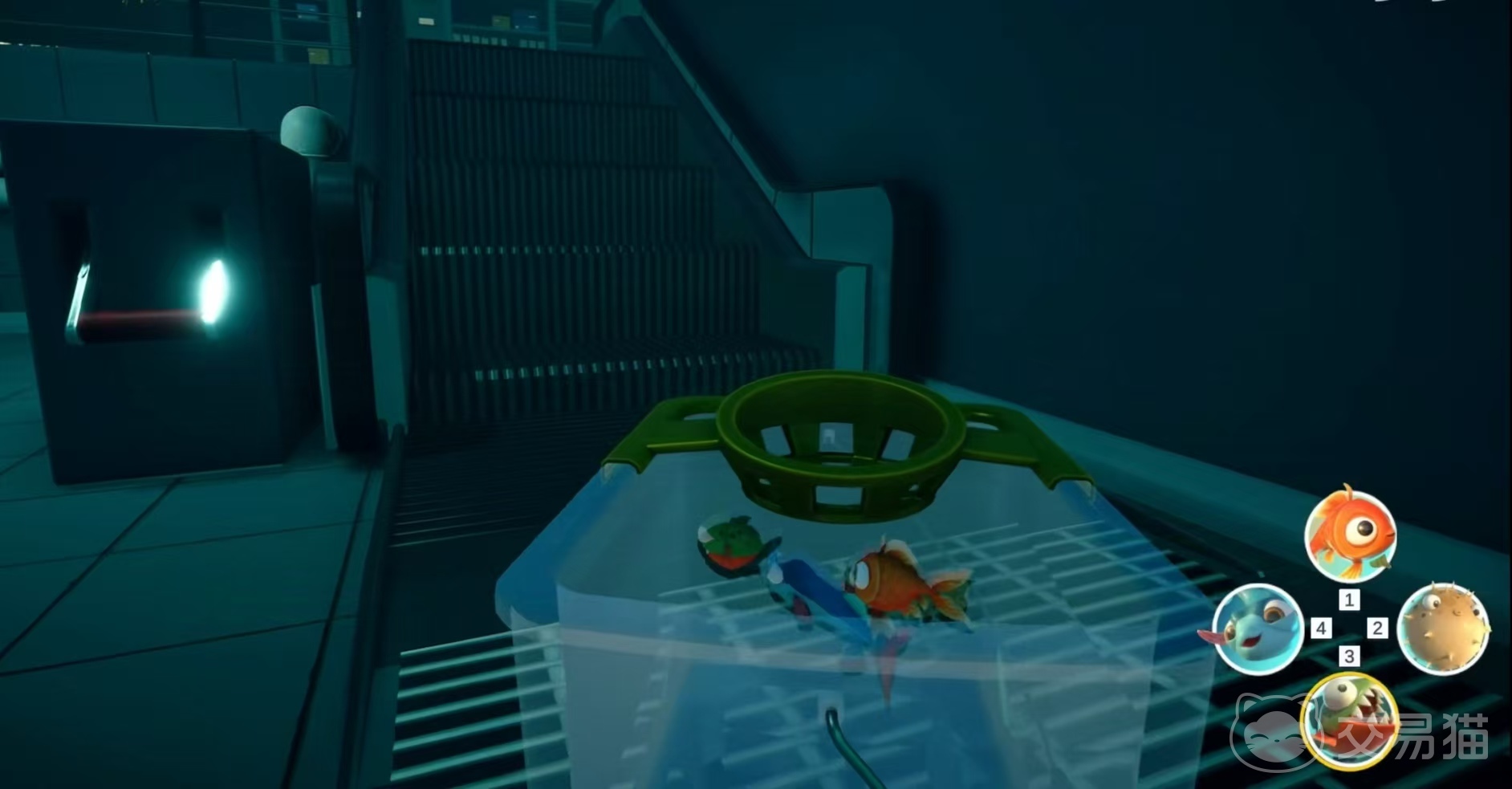 在关卡3中,食人鱼在仓库内借助冰块滑行,需要躲避医生的追捕,找到楼梯门进入实验室水槽。利用咬合力搞破坏使水池填满水,再撞翻血袋让第二个池子也充满水,然后打开柜门咬开血袋提升水位,最后进入有安全通道灯的电梯,电梯门打开后顺着水流漂进路面管道,再咬坏一个阀门就能沿着管道抵达海洋与小金鱼汇合。