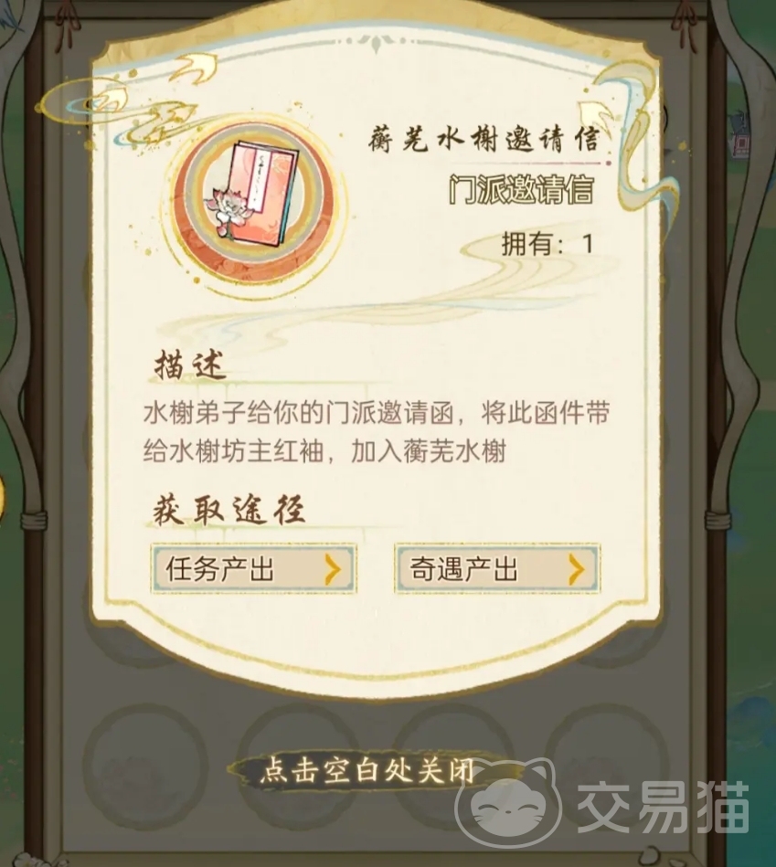 蘅芜水榭可通过邀请函来加入,邀请函的获取方法主要有两种,一种是在奇遇里结识蘅芜水榭的弟子,并完成任务获取,但奇遇任务随机性比较高,因而该方法只建议在玩家想转门派时再去使用。另一种就是通过主线拿到,当玩家们初入江湖后,就能遇上丐帮弟子和蘅芜水榭弟子在比武,此时玩家们只要选择帮助蘅芜水榭弟子,就能在后续与她分别时拿到蘅芜水榭邀请函。而在后续的主线中,人们便能在加入门派的任务里选择蘅芜水榭作为自己想要加入的门派。