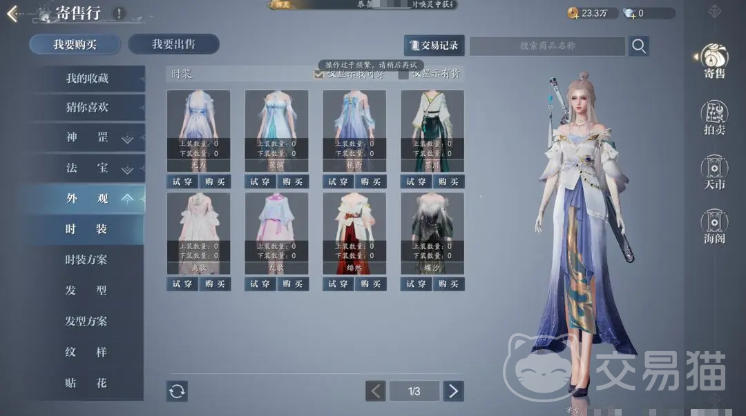 如果有其他玩家看中了摆摊售卖的物品,可在线查看物品以及价格。这个交易也比较简单,直接去主城的摆摊区域,或者通过商城进入摆摊,选择出售,将物品放在摊位,并设置好价格就行,普通的物品都是有设定价格的区间的,珍品定价比较自由。