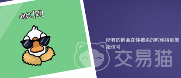 网红鹅的身份其实是十分关键的,因为他在死亡的时候,所有属于鹅阵营的玩家右侧都会直接弹出一个死亡遗像,这个遗像的画面是固定的,不会因为玩家的着装而改变,鸭以及中立阵营将不会有任何提示,靠着这个是能帮助团队,来判断场上哪一位是坏人的。