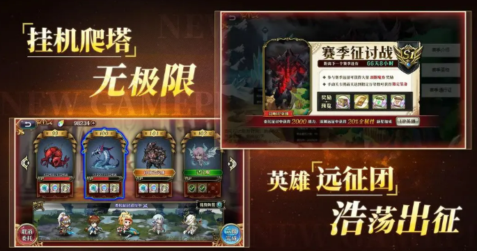 除此之外,今年下半年还将推出全新的常驻玩法——「赛季征讨战」。这个玩法有两大模块,一个是轻松的挂机爬塔,一个是考验操作的手动战棋,无论你喜欢哪种类型的玩法,都能在这里找到属于自己的乐趣。更有「圣物系统」和「附魔转换功能」来增加游戏的深度和策略性,指挥官们将在每个赛季中积累成长资源,提升全体英雄的属性。