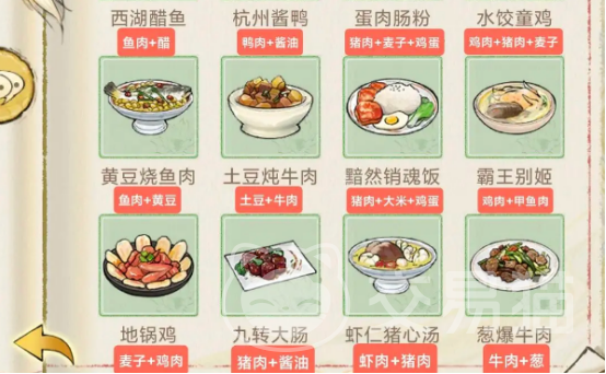 首先在此游戏当中就可以制作成叫花鸡,在此产品当中,鸡就是必不可少的食材是需要将三黄鸡精心处理,将所有的内脏以及鸡毛全部彻底清除干净之后,就需要利用较大的荷叶将其包裹,在外表涂抹上厚厚的黄泥之后,就需要在烤炉当中进行烘烤,制作出来的口感非常清香,鲜嫩的鸡肉再搭配上荷叶的清香味道就是比较有代表性的一种菜品。