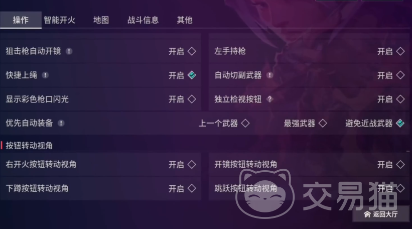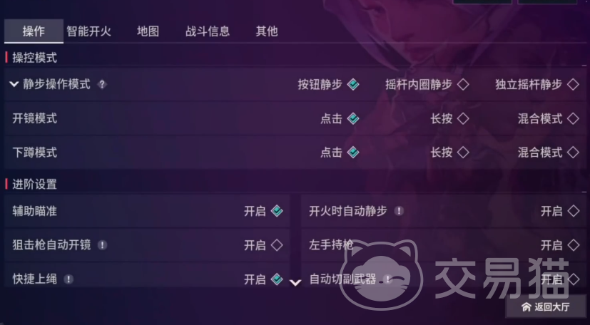 在游戏里想让操作更加便捷,就需要先进行基础的调节,首先建议玩家打开按钮静步,这样不会因为误触暴露自己的位置,要提升战斗的效率,并且在对战的时候有更强的隐蔽性,那就需要把开火后取消静步开启,假如玩家想让瞄准更加精准,就可以开启游戏里的辅助瞄准设定,这样一旦进行瞄准,系统会自动进行辅助,能让玩家可以更加精准的瞄准对手,游戏里还会有自动更换武器的设定,建议玩家把这个设定关闭,否则武器一旦没有弹药,就会自动进行切换,这对玩家的实际战斗会产生很大的影响。