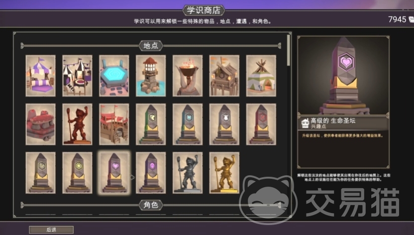 部分物品的解锁还与为了吾王模式下的场景探索进度挂钩,比如清理闪光矿井并推进至第二阶段任务,矿井深处的神秘祭坛会被激活,随之解锁商店中与采矿相关的特殊工具,清理国王迷宫并达到第三阶段任务后,迷宫中心的宝藏室开启,对应的解锁条件也会同步达成,此外,与特殊祭坛的互动也是解锁条件的一部分,上位祭坛或英雄祭坛周围通常矗立着英雄雕像,玩家需要多次触摸雕像以积累互动次数,由于这一过程可能较为耗时,建议玩家在首次发现英雄雕像时进行存档,之后通过反复读档、触摸雕像再退出的方式,快速累积次数,提升解锁效率。