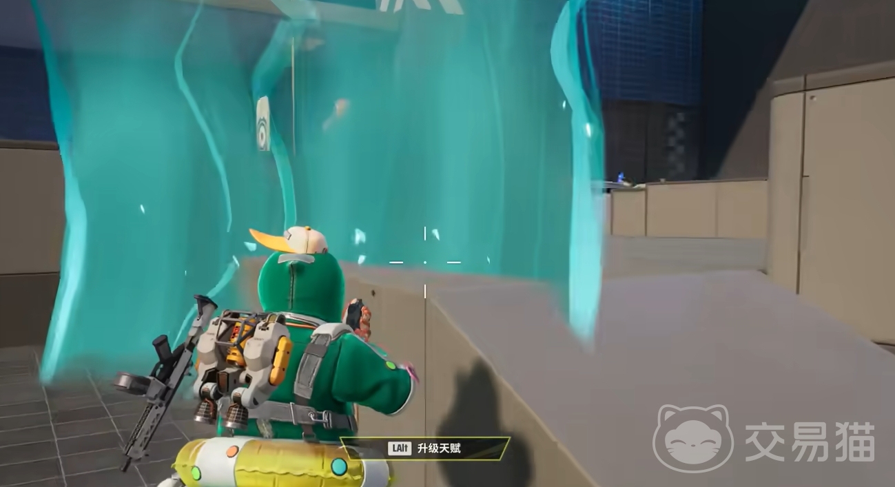 鸭鸭的二技能为超鸭风盾,使用后鸭鸭会在前方释放出一道风盾,能阻挡子弹和投掷的所有道具,有着非常强大的防护能力,在遇到可凭借这一手阻挡住对方大部分的输出,能有效地保护己方成员。但要注意,生成的风盾有着双向阻挡的特点,不光敌方的火力无法穿透,己方也没办法在风盾后打到敌方,所以各位在风盾持续时间内最好乘机去寻找掩体来应对接下来的作战,不要在风盾后反击。此外,风盾是比较适合先升满的技能,能积累两次风盾的效果对鸭鸭非常重要。
