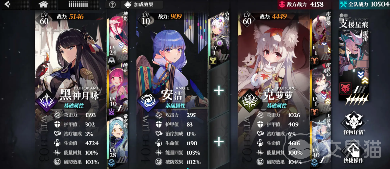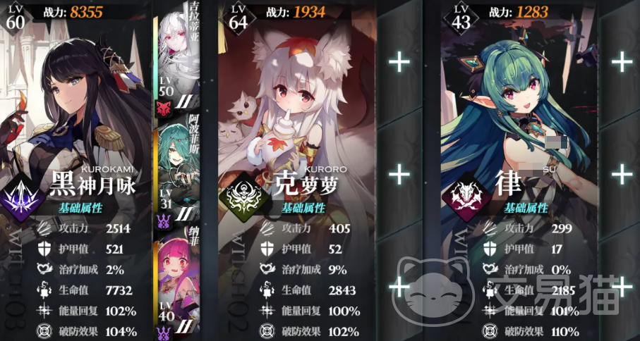 核心则集中在【神光】身上,不仅是灼烧队的灵魂,更是整个体系成立的前提条件。技能倍率极高,并且自带真实伤害,让灼烧状态的持续伤害在直伤之外形成额外的输出层叠。不过灼烧命中率是整个体系的短板,因此【库萝心】与【库萝爱】必须成对上场以保证被动提供的命中率,否则灼烧效果会大幅削弱。【卡萝琳】则是提升稳定性的另一关键辅助,凭借降抗与效果命中提升,使得灼烧状态更容易覆盖全场。在思路上,灼烧队并不像侵蚀队那样依赖状态本身的伤害,而是通过不断叠灼烧为神光的直伤技能提供额外加成,因此绝大多数直伤队辅助都可以直接搬来使用,包括加攻、降抗、增益类的各类角色。打法节奏与直伤队相似,前期快速铺满灼烧状态,中后期由神光集中爆发直伤。由于百分比真实伤害在高血量BOSS战中的收益极高,这套体系在长线消耗战中非常亮眼,但成型门槛也相对高,核心角色缺一不可。