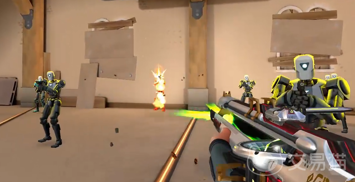 最后是控枪练习,我们可以先把前面几发子弹打向墙壁,然后迅速进行拉枪,把准星控制在机器人的头上,就打前面几发,然后迅速拉枪,这样练习能帮助我们一次性面对多位敌人,需要注意由于枪械后坐力的存在,一般情况下子弹都是前面3发是最准的,所以攻击其他目标时记得微调一下。