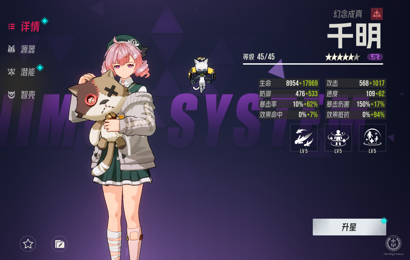 虽然还是使用回合制的战斗,但是在玩法不同,能让4-5名的异格者上阵,虽然是传统回合制,但是新加入了智壳的机制,让角色的配装更加灵活,队伍整体的技能搭配也更丰富;每个角色有各自属性,有下位的红绿蓝,对应着理虚异,三种属性互相循环克制,上位有光暗属性,对应破序恒定,共计5种属性。