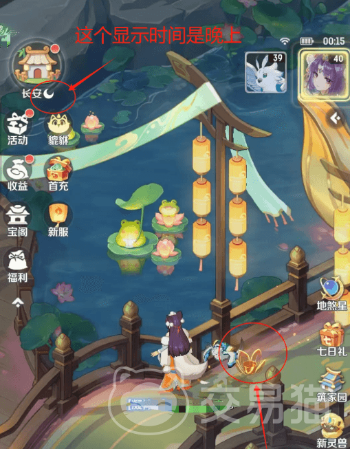 首先是“鲤影逐灯舞 ”,这个需要我们在长安城的桥上找到金色的莲花,该莲花白天是不会出现的,只要在晚上才有,所以大家需要等待到晚上,具体的昼夜划分可以打开左上角的时间轴来查看,在地图中每15分钟就会昼夜更替一次。