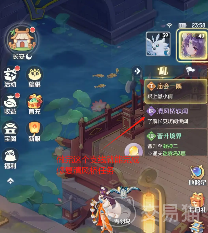 找完后我们还剩下最后一个“修复清风桥”的游历任务,这个大家初始可能会发现没有办法完成,但是其实很简单,只要耐心升级等到我们达到40级的时候就会自动跳出一个“清风桥传闻”的支线,我们跟着指引去把这条直线给做完,游历任务也会随之完成。