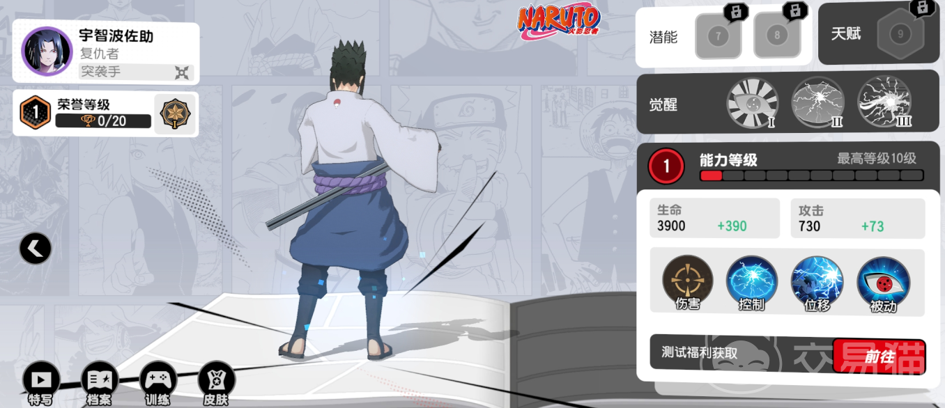 擅长突进快速斩杀,以佐助为例,普攻可近可远,视与敌人的远近而定,离得远就是用手里剑攻击,离得近则是用草薙剑。小技能千鸟流范围范围伤害加短暂眩晕控制,大招则是向着目标的快速突刺并造成伤害。佐助的被动也比较特殊,可以看清敌人的能量值,觉醒后更是能看清敌人的技能范围。