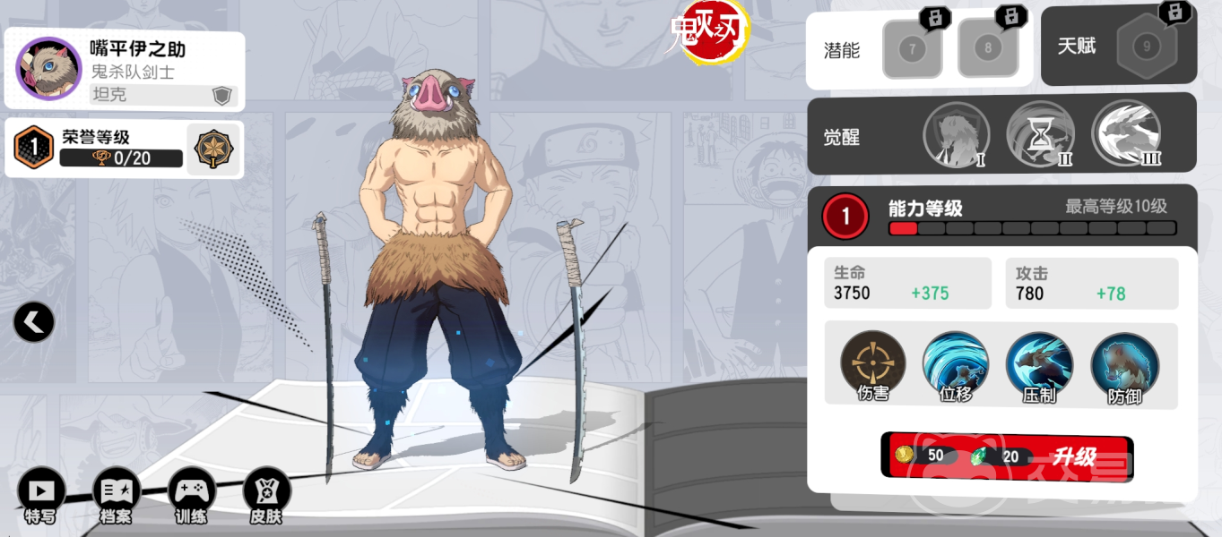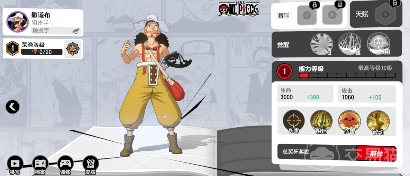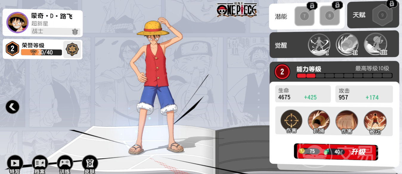 攻守均衡的角色,三大漫的主角在这个游戏里都是战士,以路飞为例,普攻是小范围的持续4次攻击,可以一边移动一边攻击。被动则是在造成伤害的时候可以获得移速加成,并且在觉醒后还可以在此期间免疫减速效果,更容易追击敌人。小技能可以将自己抓向敌人,需要一定的预判。大招则是矩形范围的的强力一击,但释放后会短暂变成小路飞。