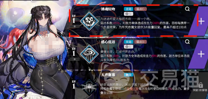 第2个技能就属于全体伤害,可以让敌方担起的战斗可以降低5%的攻击力。一旦在升级技能之后就可以迅速的提升技能伤害,在第1次觉醒之后,就可以将攻击力降低效果直接提升7%,不过这个技能的降低攻击力效果是没有办法叠加的。第3个技能是核心技能,主要的作用就是提升能量的恢复。每一次攻击都会降低敌方成员1%的攻击力,而这个效果就可以叠加十层。触发的方式也会有两种,第1种就是触发连接技能,第2种就是会被动的触发技能,但无论如何,整体的实力都是比较出色的。