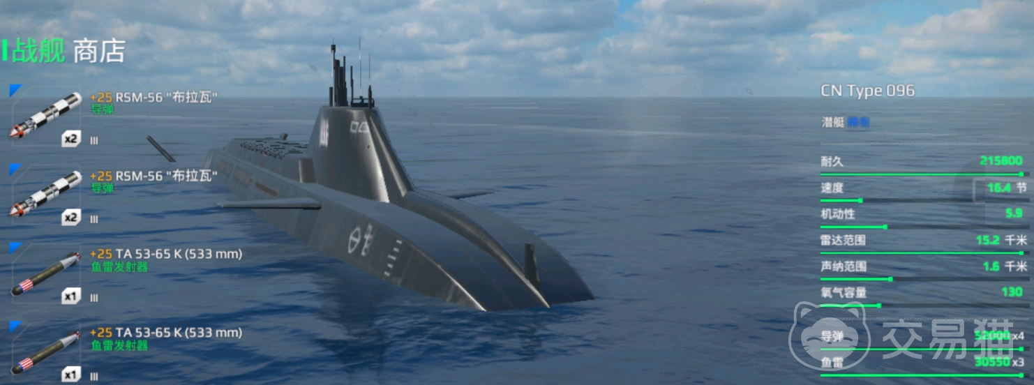 它的终极武器配置在此特别推荐一种极具杀伤力的组合,大家可以携带2枚鹰击18B潜射导弹外加2枚布拉瓦巡航导弹,其中鹰击18b潜射导弹堪称是096潜艇的核心王牌装备,完全有资格同时装备两枚之多,这款导弹拥有着很高的射速,更厉害的是它还配备了先进的热诱干扰系统,能够在敌方复杂的反导系统尚未来得及精准锁定之前,便突破防线,尤其适合在战斗伊始发动第一波突袭打击。
