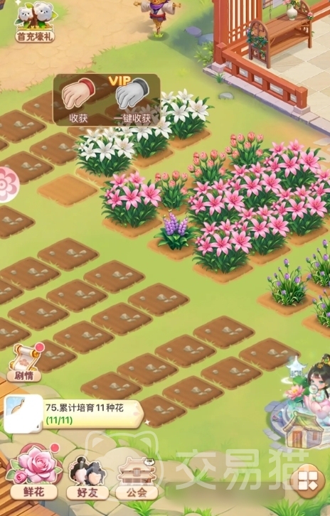 游玩时,各位需要在游戏里完成对鲜花种子的获取才能进行种植,获取的方式有很多种,光是推进主线就能让玩家们逐步获取多个不同品种的鲜花,并且游戏所开放的活动也包含有鲜花,参与只要达成相应的目标便能领取。除此之外,购买礼包等氪金方式也能让玩家们拿到很多好看的鲜花。拿到了鲜花种子后,玩家便能它们种植在土地上,但要注意只有已经解锁了的土地来进行种植,未解锁的土地玩家们也无需担心,它们会随着游戏进度逐步开放,最终都能被玩家们使用。