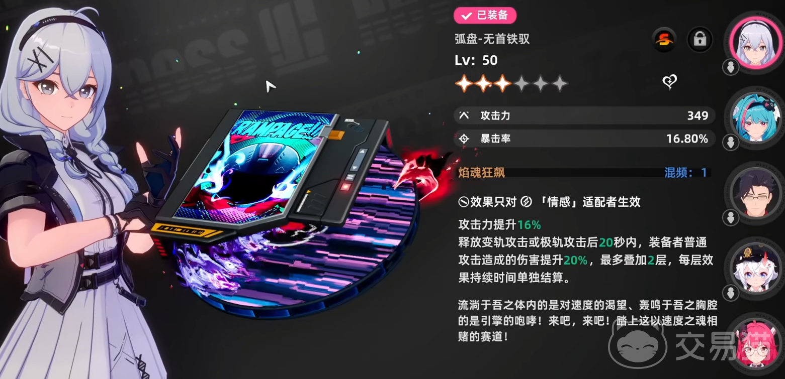 适配对象:情感属性速攻手(如夜莺、赤霄)基础增益:攻击力+16%(恒定生效)核心特效“轨焰共鸣”使用变轨斩击(↑+攻击键)或极轨突刺(↓+攻击键)后,触发持续20秒的【炽燃印记】。印记存续期间所有普通攻击伤害提升20%,该效果最高可叠加2层(即理论增伤40%)。非常适用于Boss战与精英怪对决。当面对高血量目标时,通过连续释放变轨→极轨→普攻循环,4秒内可实现:变轨斩(激活1层印记)→ 极轨突刺(激活2层印记)→ 普攻连段(享受40%增伤)实测对单体输出效率提升34.7%,堪称爆发窗口期最优解。